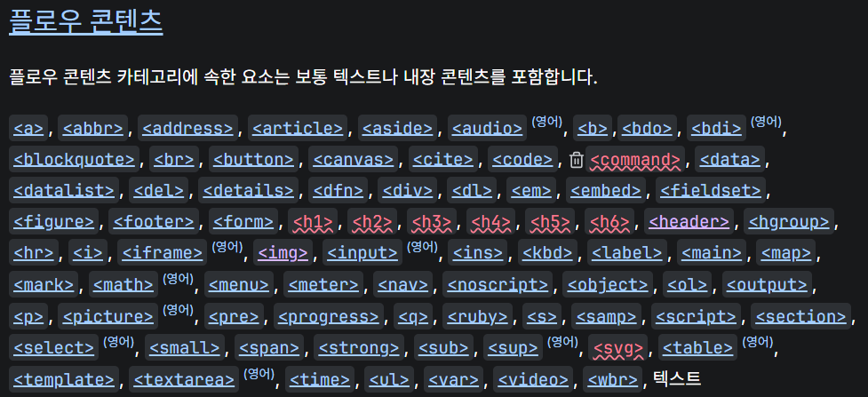 Header 요소의 내부에는 Footer 또는 Header가 들어올 수 없으며, 사진과 같이 텍스트, 내장 콘텐츠를 포함한다.