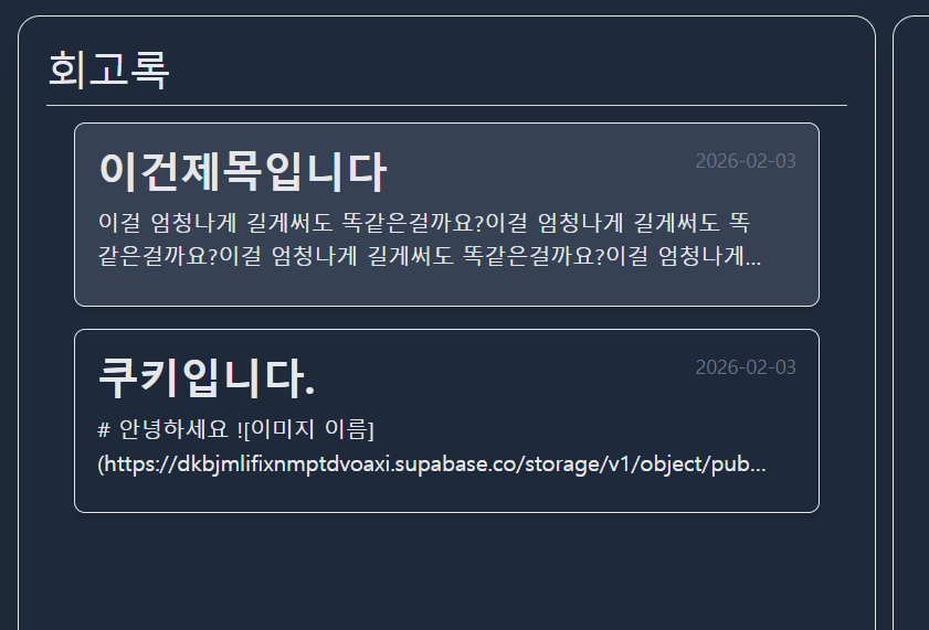 현재 게시물 상세 페이지는 랜덤하면서도 유일한 ID 값을 기준으로 Supabase 테이블과 연동되어 있다.