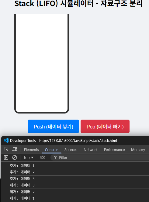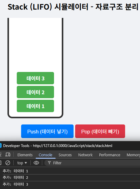 stack이라는 배열에 버튼에따라 value가 배열에 저장되거나, 삭제되도록 하였다.