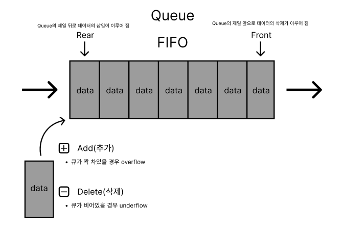 위와 같은 개념에서 코드만 살짝 수정하여 Queue를 구현해보았다.