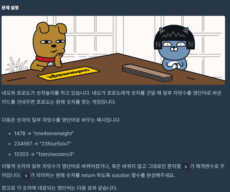 기본 숫자에는 1~19까지https://school.programmers.co.kr/learn/courses/30/lessons/81301